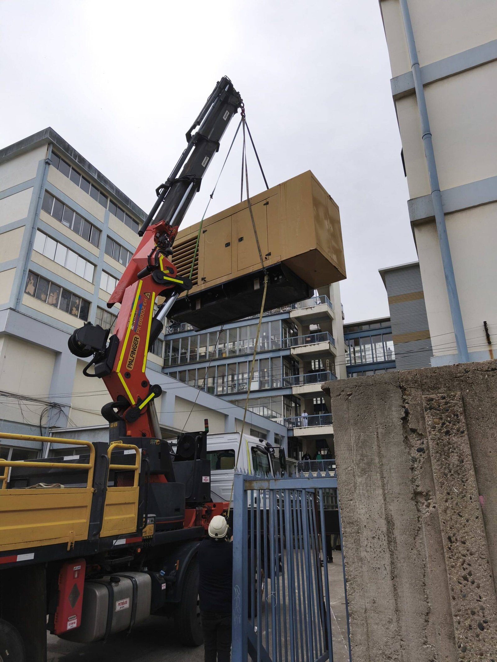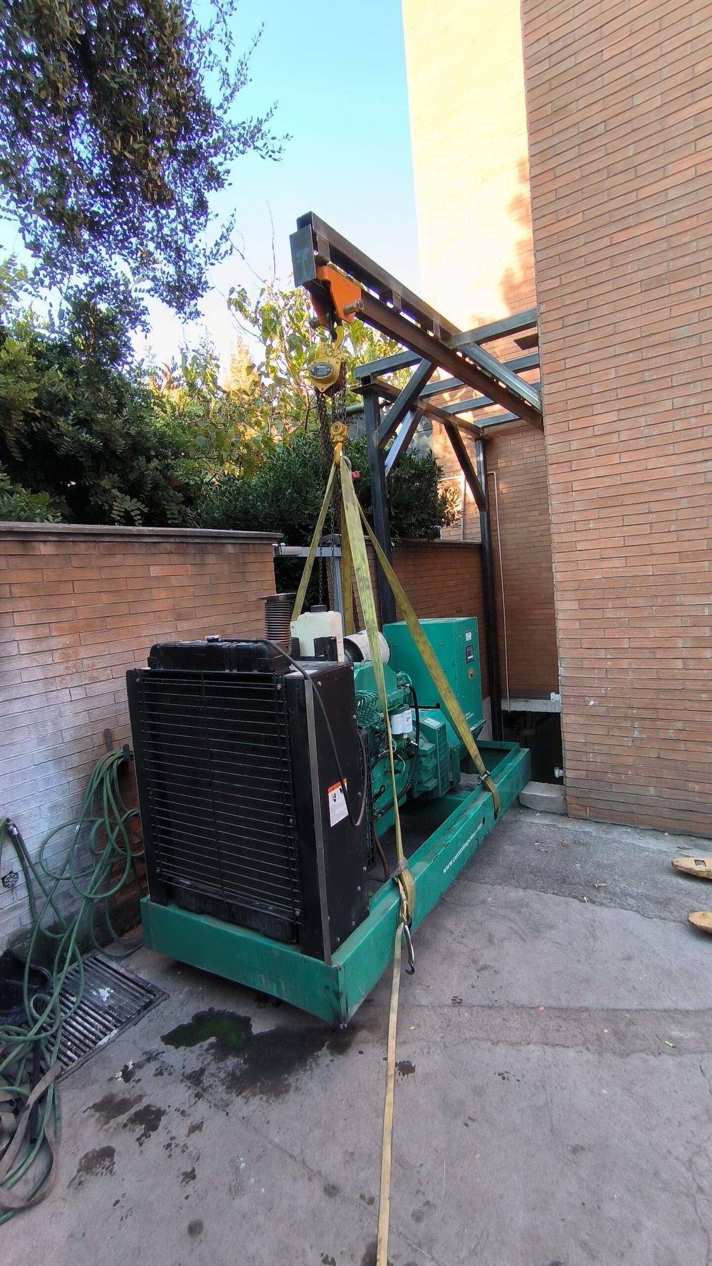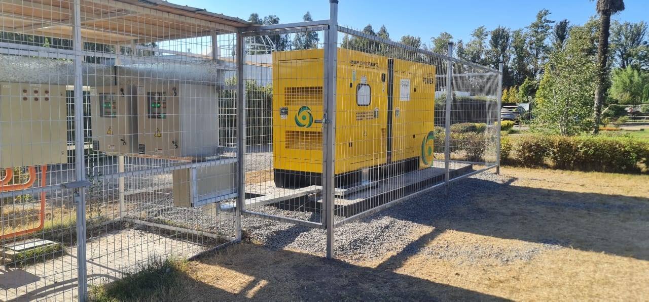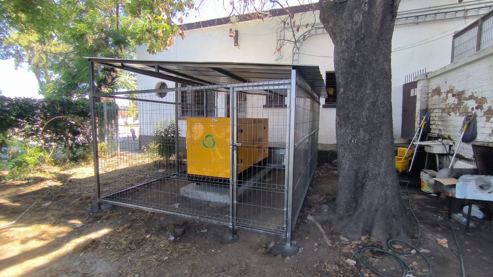 Montaje de grupo electrógeno con cierre perimetral, losa de hormigón y cambio de empalme. Incluye fabricación de tableros y corrección de factor de potencia mediante banco de condensadores.