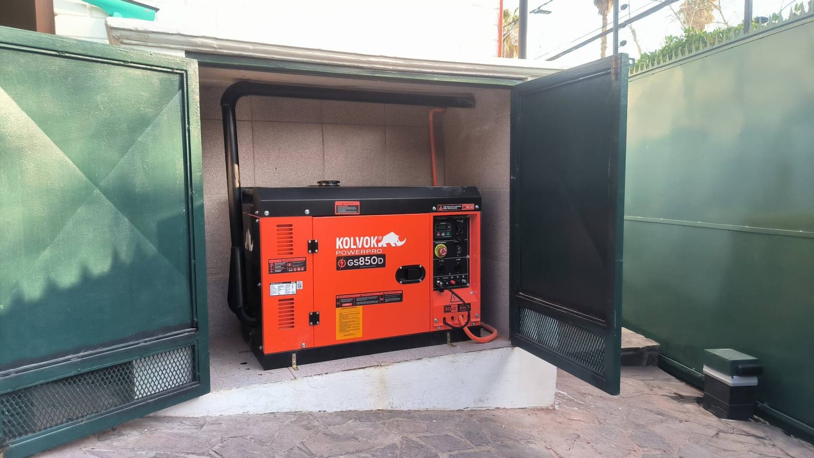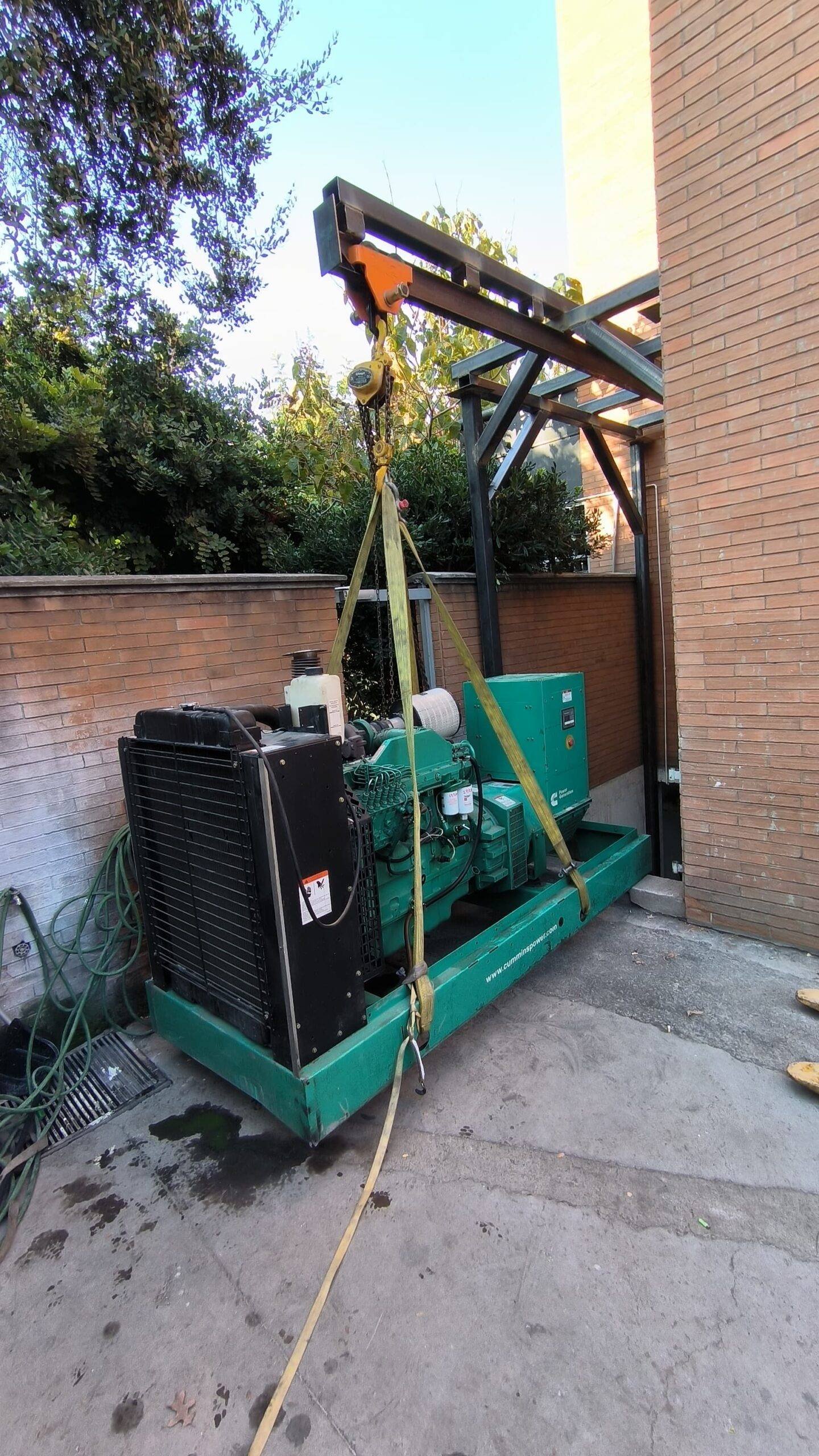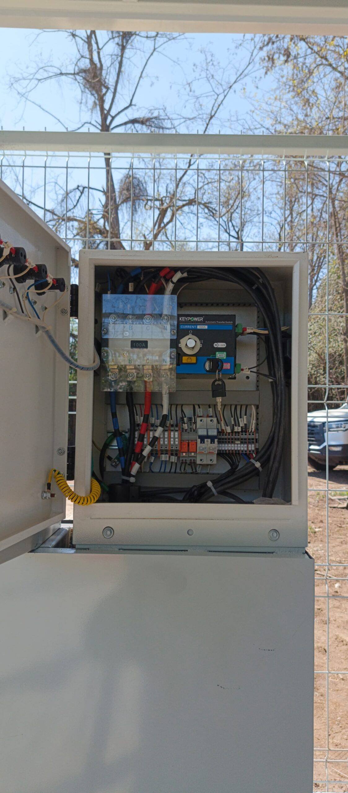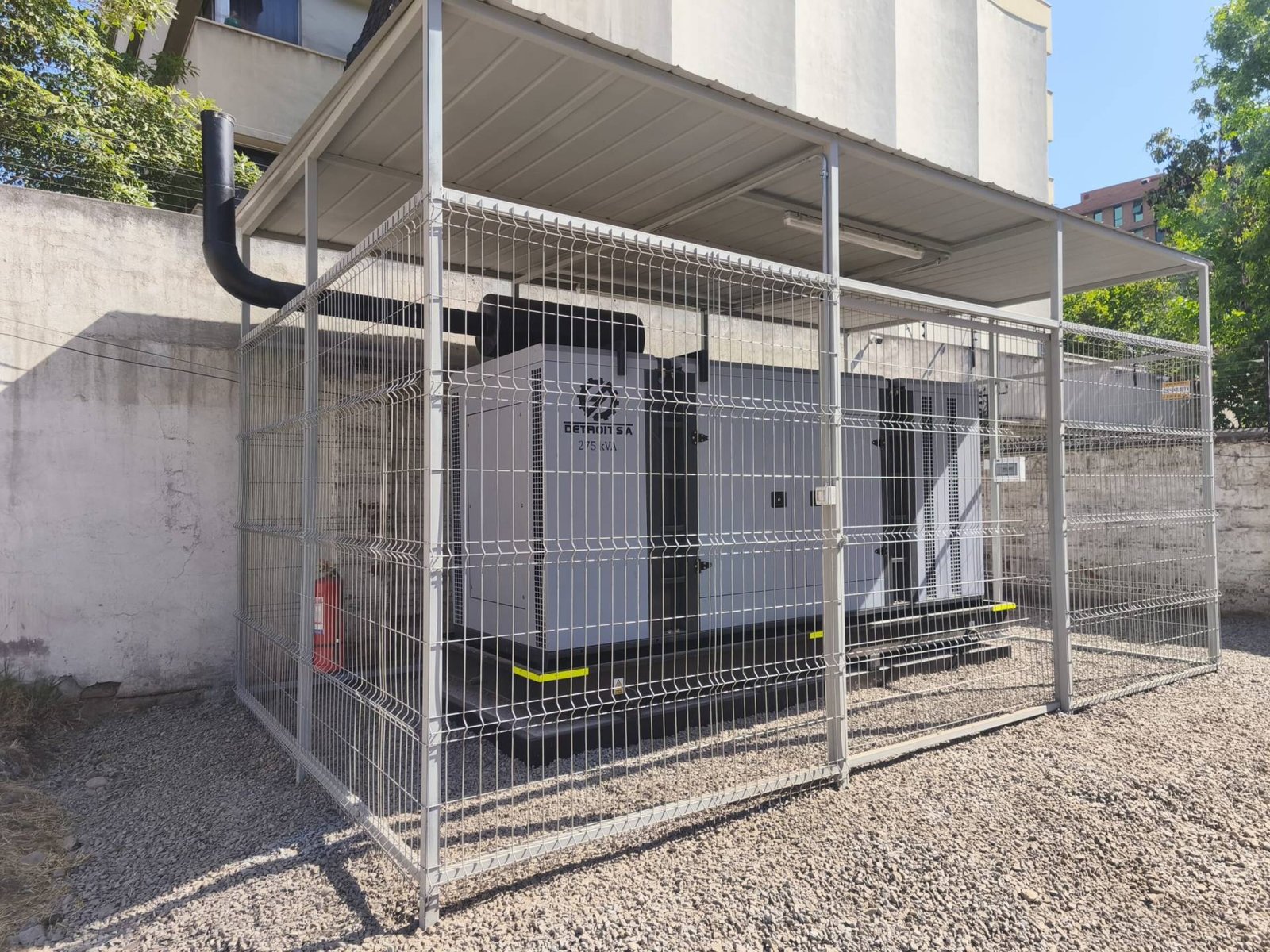 Montaje de grupo electrógeno con cierre perimetral, losa de hormigón y cambio de empalme. Incluye fabricación de tableros y corrección de factor de potencia mediante banco de condensadores.