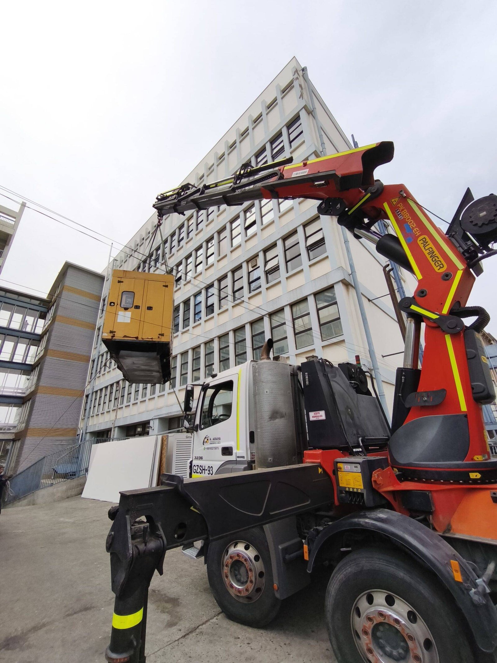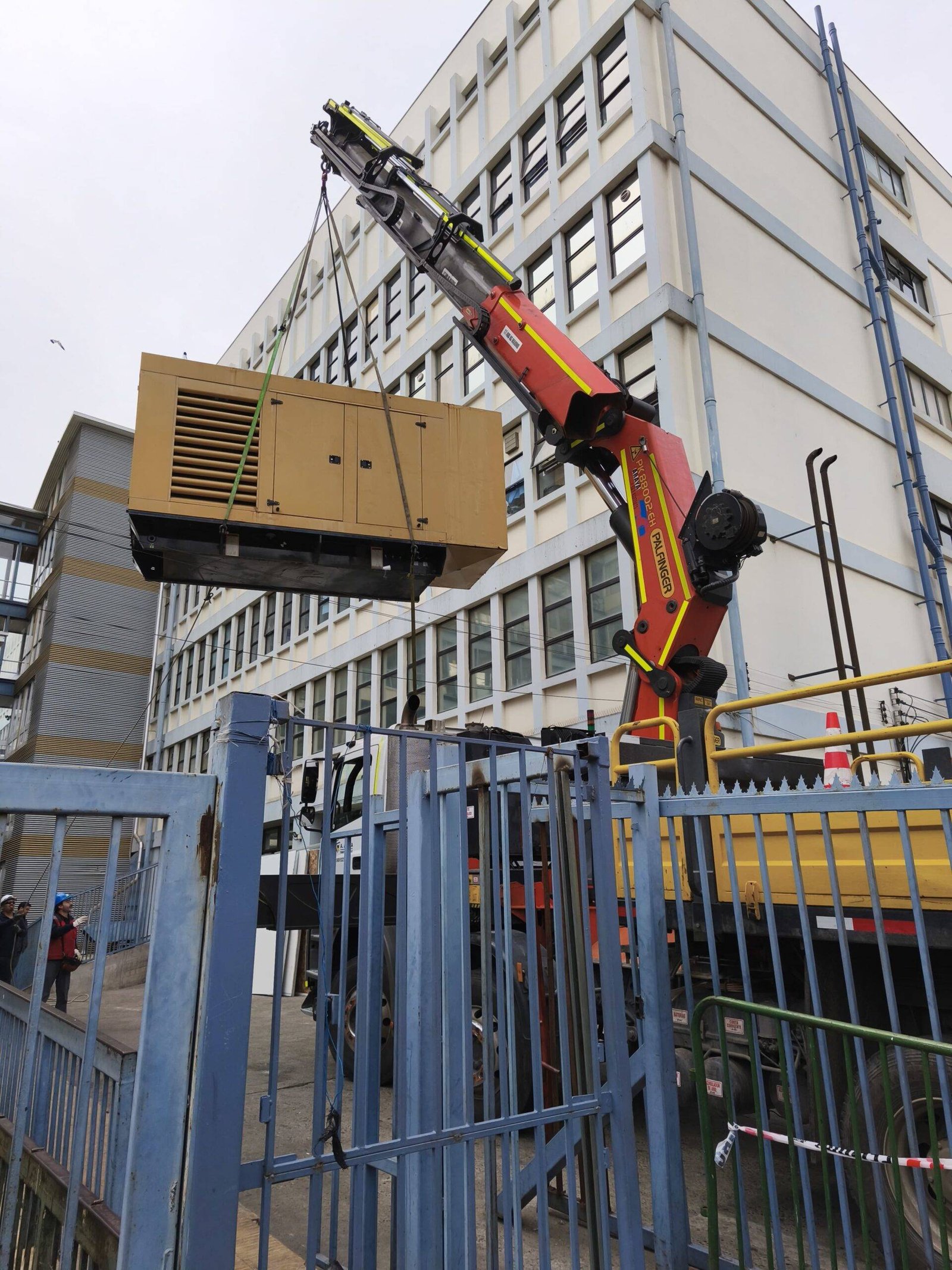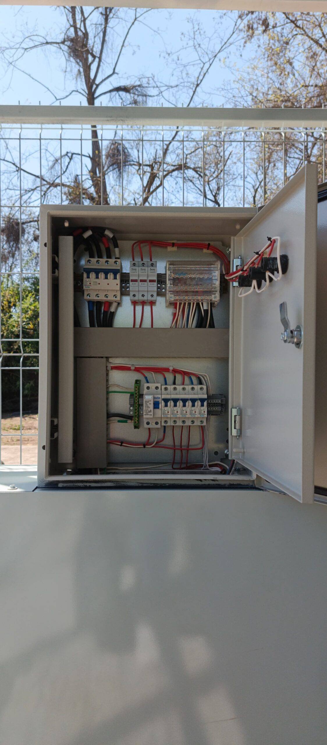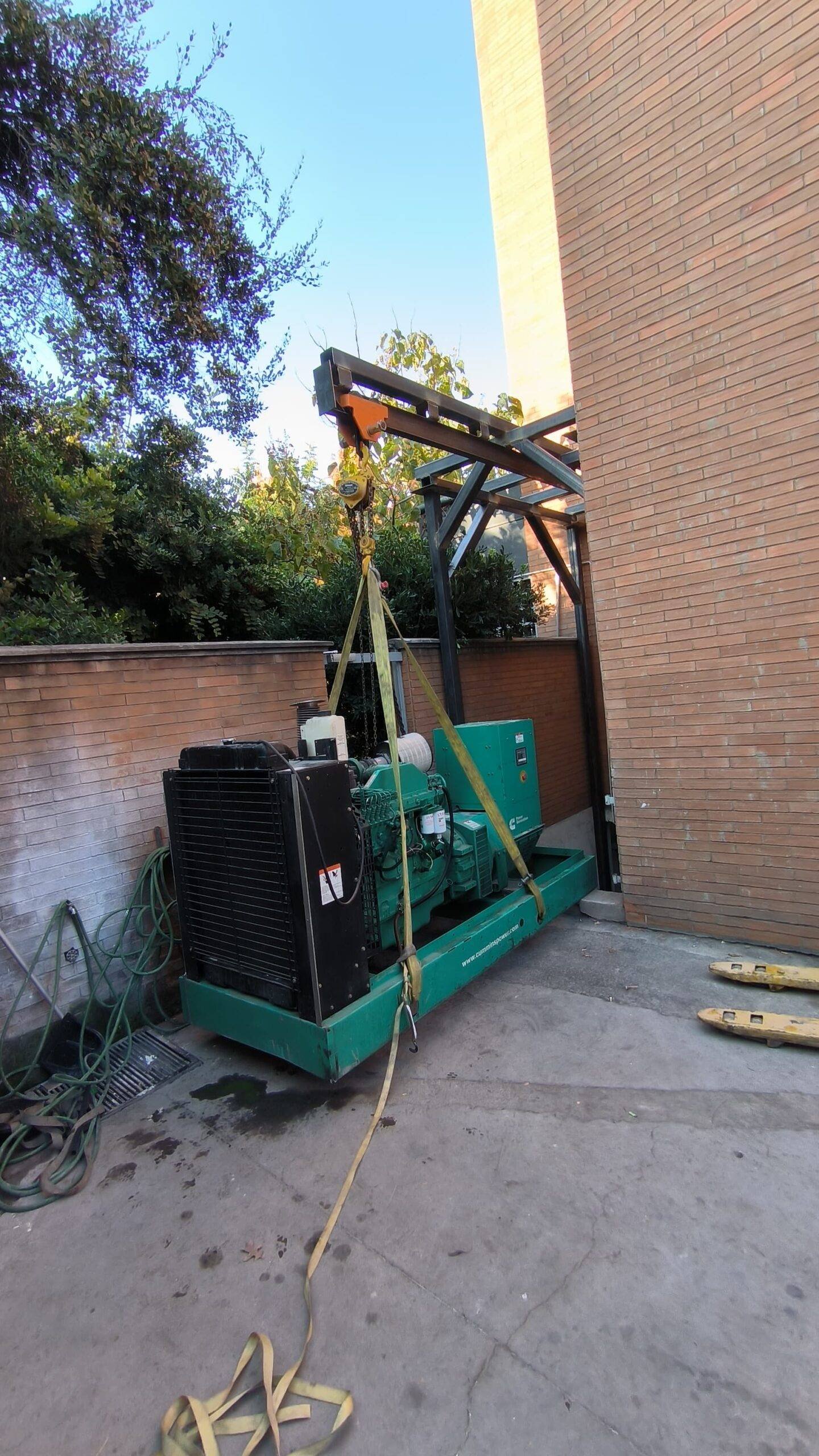 Montaje de grupo electrógeno con cierre perimetral, losa de hormigón y cambio de empalme. Incluye fabricación de tableros y corrección de factor de potencia mediante banco de condensadores.
