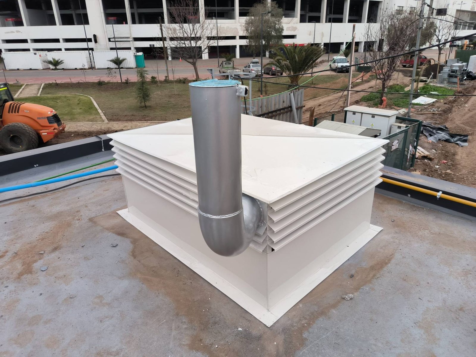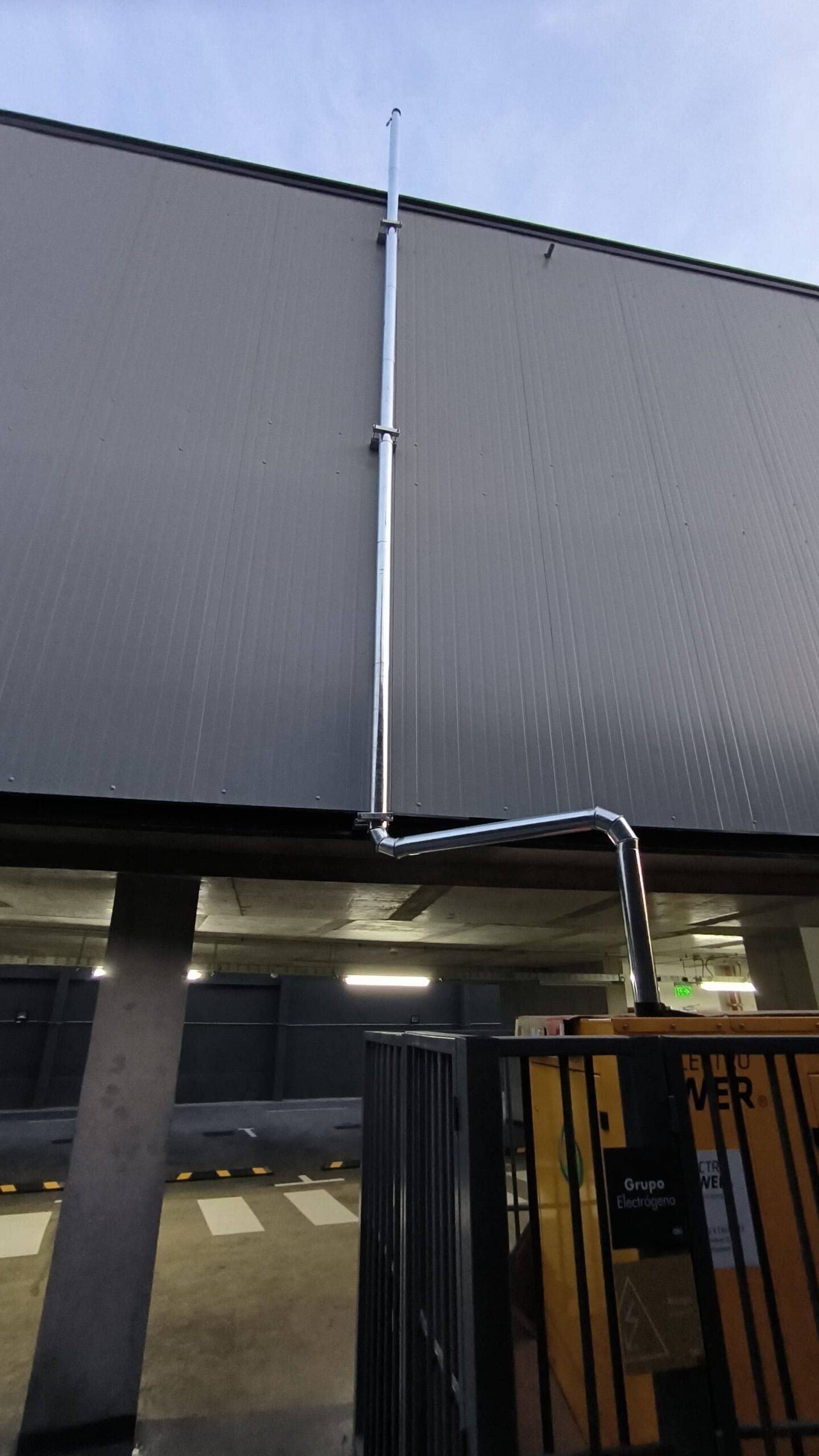 Modificación de ducto de escape desde subterraneo hasta azotea, con fabricación e instalación de silenciador hospitalario.